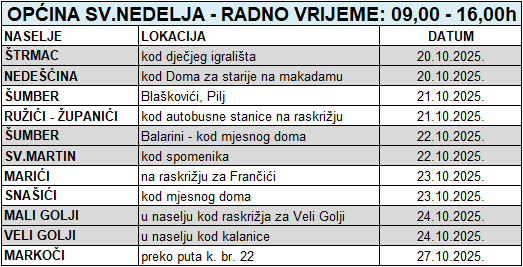 Obaviještavamo korisnike kojima se odvoz miješanog komunalnog otpada i selektivnog otpada vrši subotom da će se u zimskim mjesecima odvoz vršiti radnim danima prema rasporedu koji je naveden niže u tekstu. Naime, to se odnosi na Rabac, Ripendu, ulice Karla Kranjca i Rudarsku, potez Marciljani-Markoči, Cere, Santalezi, Stepančići, Županići, Žnjidari i Zulijani. Takav raspored kreće s primjenom od 3. studenog i trajati će tijekom zimskih mjeseci.