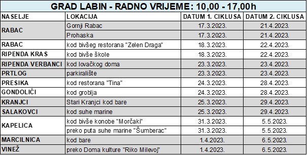 Time završava prvi ciklus postavljanja mobilnih reciklažnih dvorišta na području Grada Labina. Ukupno će se obići 14 lokacija. Drugi ciklus započinje 21.4.2023.