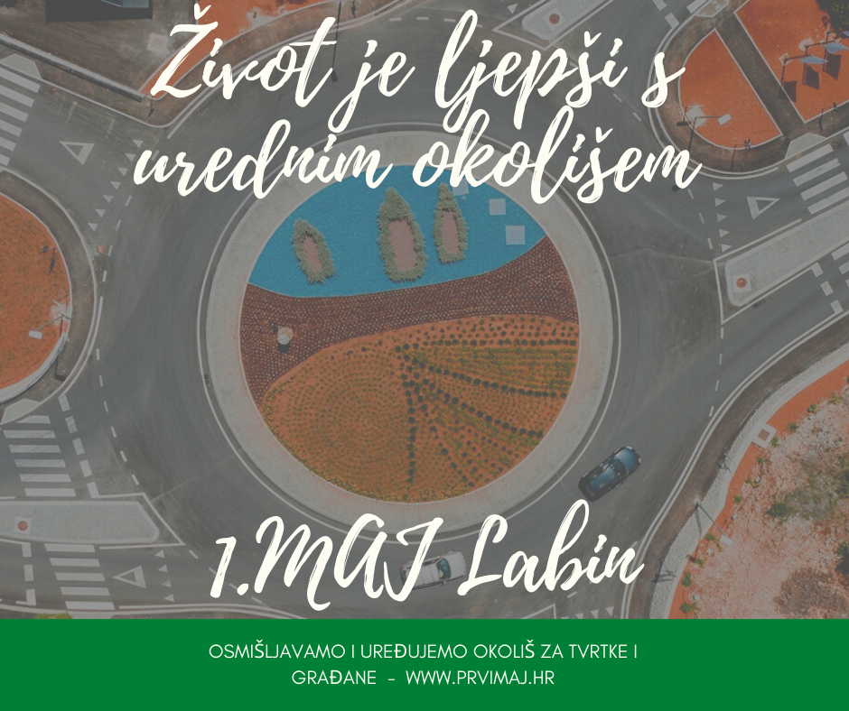 Trgovačko društvo 1. MAJ d.o.o. na području Grada Labina održava i oblikuje zelene površine ukupne površine 239.329 m2, koje obuhvaćaju područje Katura, Podlabina, Novih zgrada, Starog grada, Kapelice, Rapca i Vineža. Kao posebne cjeline mogu se izdvojiti travnjaci, cvjetne gredice, vaze i živice, kružni tokovi, šetnice u Rapcu, parkovi i groblja. Osim toga, 1.MAJ d.o.o. brine i o zelenim površinama u općinama Raša i Sv. Nedelja (poglavito u naseljima Raša i Nedešćina).